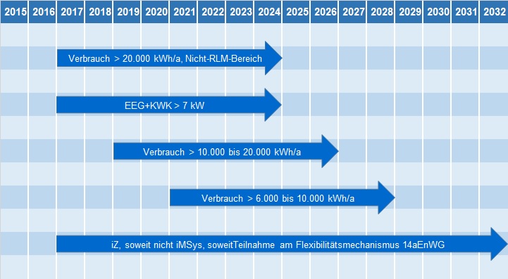 Der BMWi Rolloutplan für intelligente Zähler (iZ) und Messsysteme (iMSys) sieht eine stufenweise Einführung unter der Option von Bündelangeboten und einer Kostenobergrenze für den Verbraucher vor.